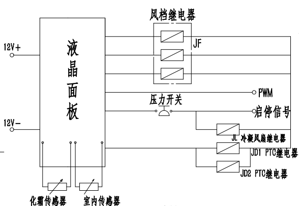 開機鍵按下,開機,進(jìn)入通風(fēng)或制冷狀態(tài)(上次記憶,自動不記憶),